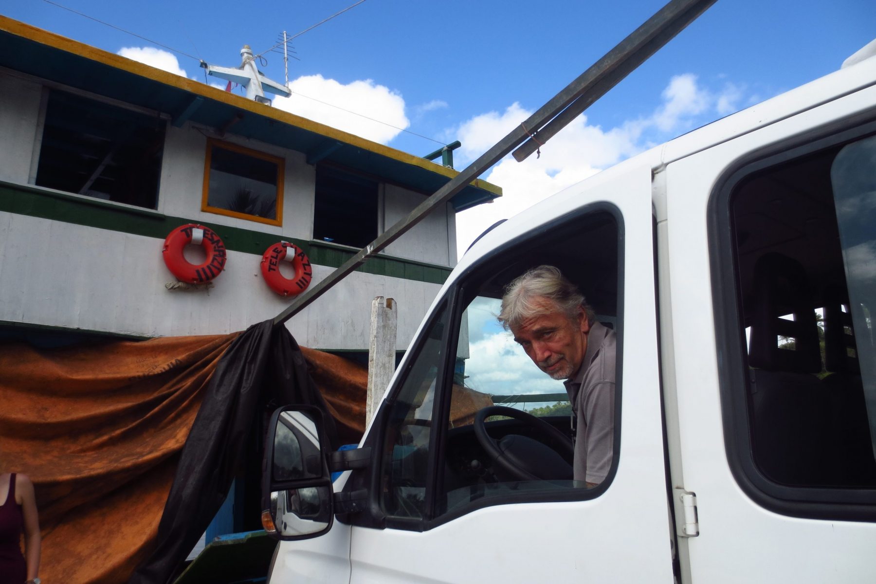 Eine problemlose Überfahrt hängt also von einigen wichtigen Faktoren ab. Auf der Fahrt erfahren wir kurzfristig über Handy, dass die geplante Fähre am Vortag auf einer Sandbank aufgelaufen ist, nun aber alternativ eine andere käme. Gerd macht das etwas nervös, weil Maße und Gewicht des DMs mit der organisierten Fähre abgestimmt waren und auch die Länge der Auffahrtrampe passte.